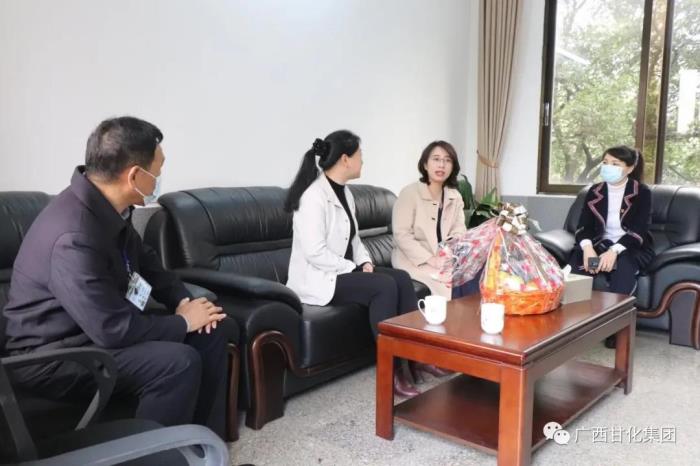2021年1月26日,貴港市政協(xié)副主席劉東慶、市工信局副局長鄧塘建一行代表市委、市政府送來感謝信,向廣西貴港甘化股份有限公司及全體員工致以誠摯的問候和新年祝福;同日貴港市委統(tǒng)戰(zhàn)部常務(wù)副部長孫曉春一行代表市委人才工作小組到貴港甘化進(jìn)行走訪慰問活動(dòng)。期間,劉東慶副主席、孫曉春副部長分別與集團(tuán)常務(wù)副總裁曹林希、貴港甘化總經(jīng)理黃敏昭、農(nóng)務(wù)副總劉曉東、人事總監(jiān)甘春鋒、總經(jīng)理助理梁衛(wèi)福進(jìn)行親切交流。