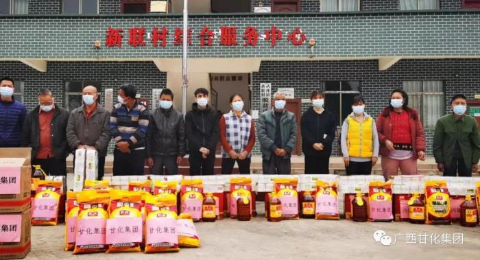2021年1月30日上午,貴港市企業(yè)與企業(yè)家聯(lián)合會副會長單位廣西甘化集團(tuán)有限公司攜手市工信局來到了平南縣武林鎮(zhèn)新聯(lián)村,開展2021年春節(jié)“獻(xiàn)愛心·送溫暖”慰問活動。甘化集團(tuán)向新聯(lián)村的二十多戶脫貧戶贈送了大米等生活必需品,提前向他們送上了新春的祝福,鼓勵他們積極開展脫貧工作,為鄉(xiāng)村的振興發(fā)展做出自己應(yīng)有的貢獻(xiàn)。扶貧獻(xiàn)愛心行動,甘化集團(tuán)一直在路上……